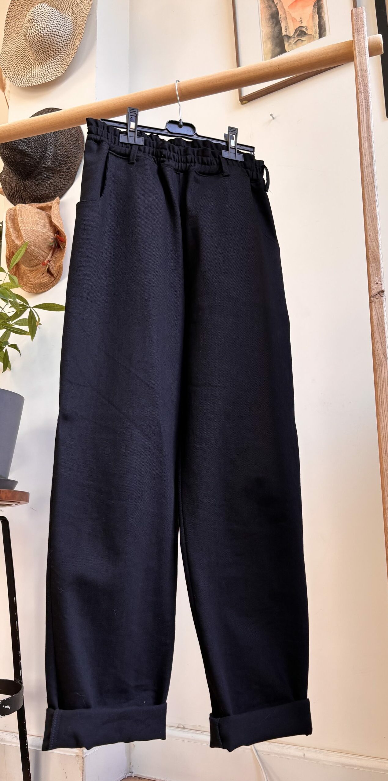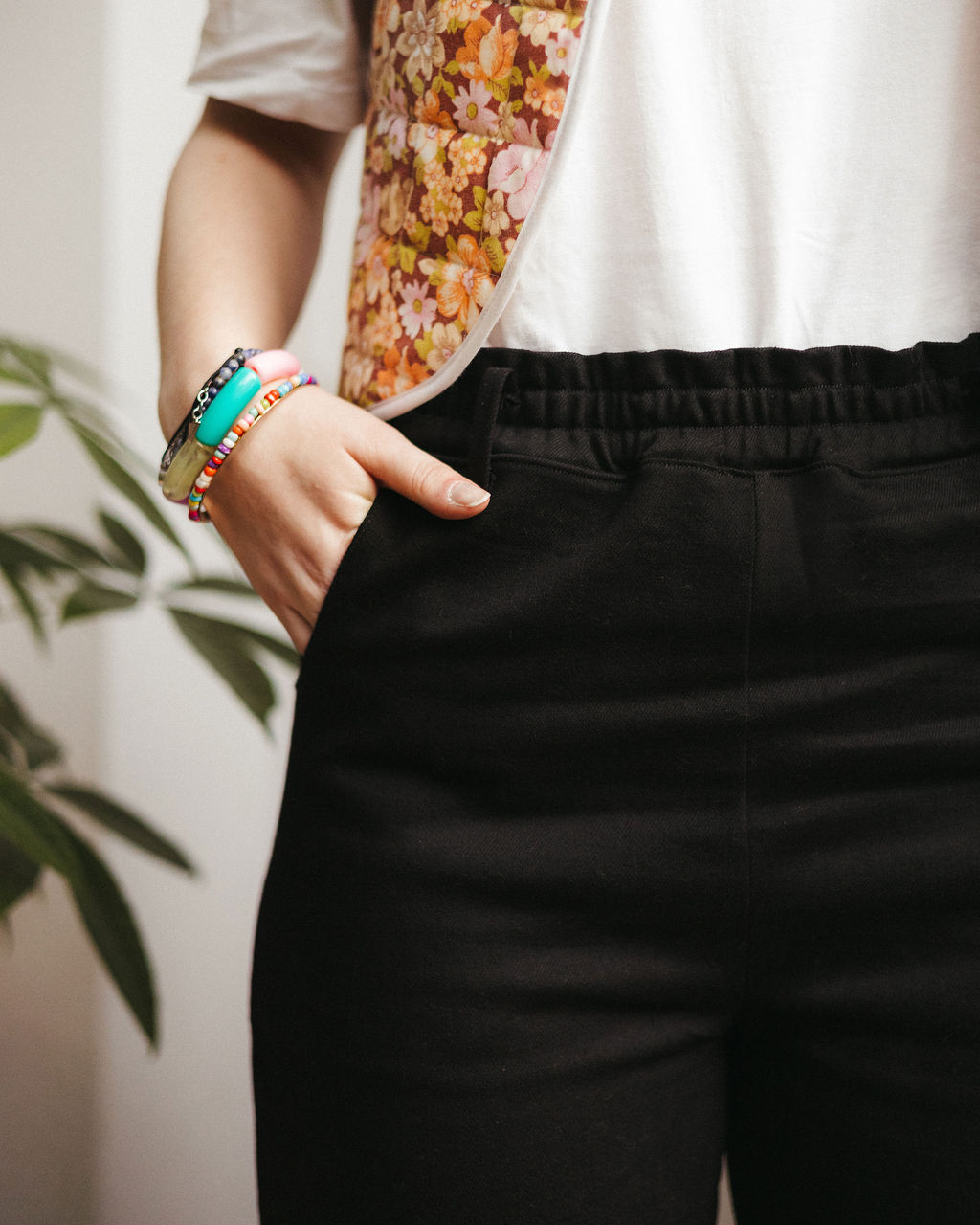 Le pantalon Cécile est confectionné dans un denim épais avec un tissu très légèrement stretch ce qui améliore son confort. Ce modèle contient une ceinture élastique, des passants, 2 poches italiennes à l’avant et 2 poches plaquées à l’arrière.