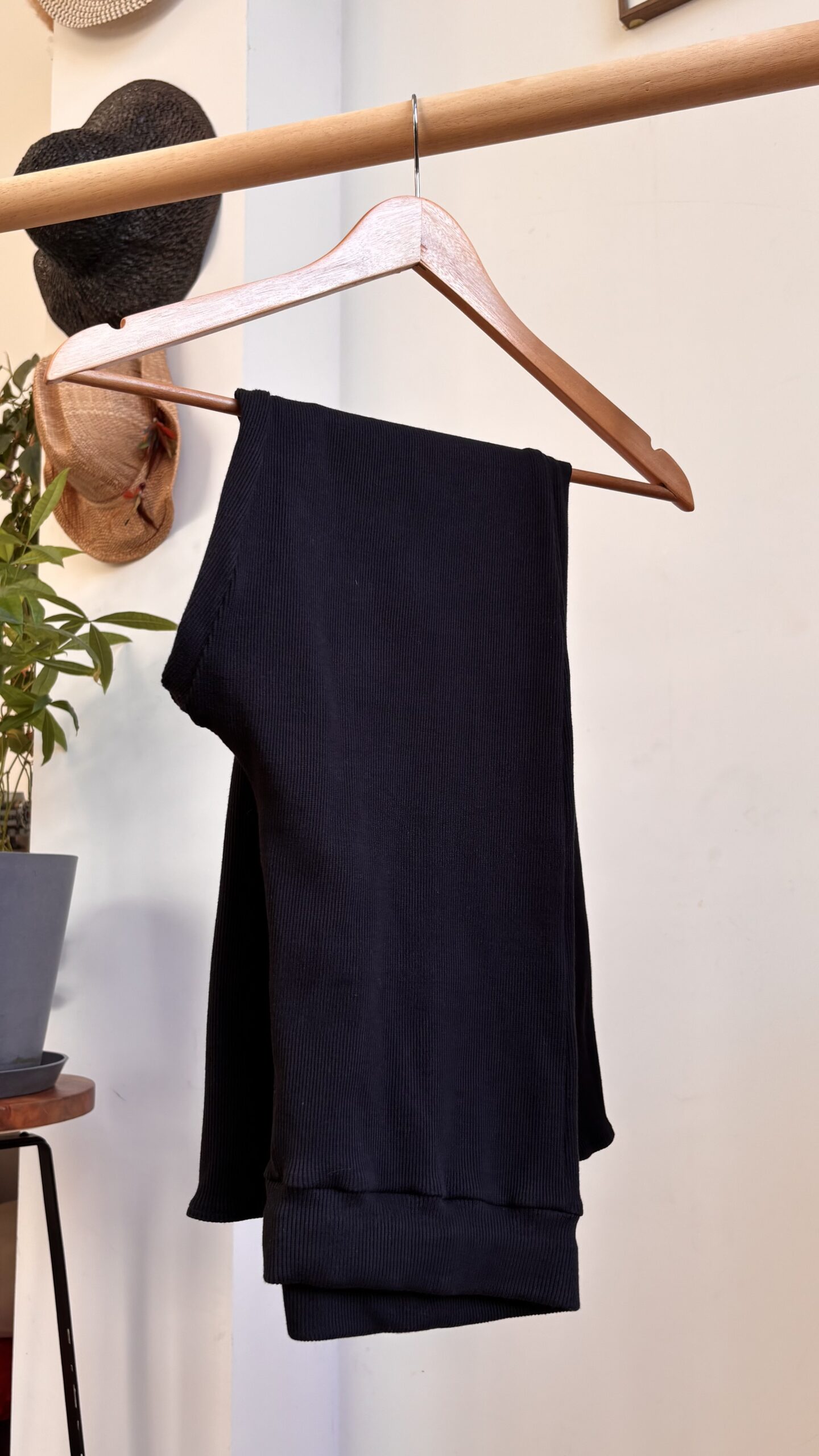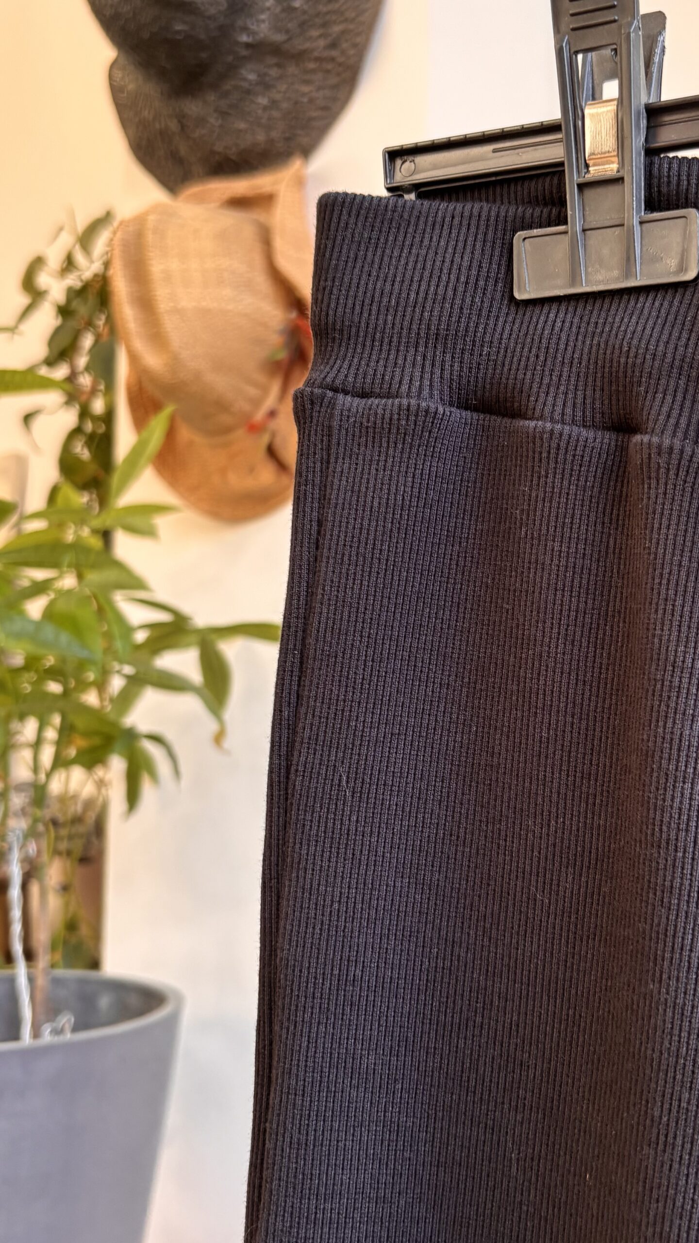 Le pantalon Mada est confectionné dans un jersey de coton côtelé ce qui permet un rendu stretch très confortable. La ceinture est élastique pour laisser votre corps vivre sans jamais avoir le ventre serré.
